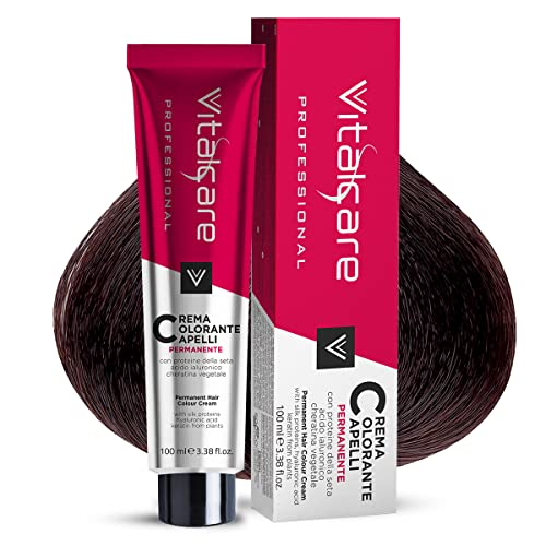 Vitalcare | Professional professionell permanent färg, hårfärgningskräm, hårfärgning med silkeprotein, nr 5/5, ljusbrun, mahogny, 100 ml