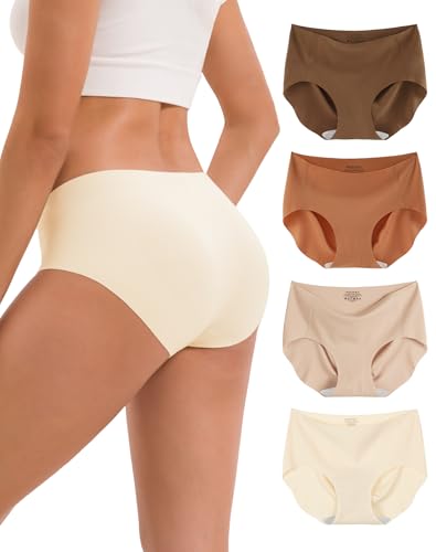 INNERSY Underbyxor, dam, sömlösa mikrofiber, sömlösa trosor, hipster, underkläder, osynliga, 4-pack, maillard färger, M