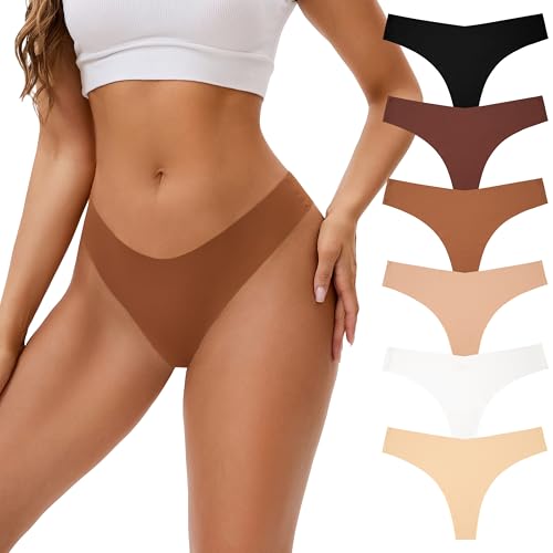 INNERSY Stringtrosa dam sömlösa sexiga sömlösa trosor tunna sömlösa underkläder 6-pack, maillard färger, L