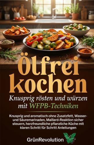 Ölfrei kochen: Knusprig rösten und würzen mit WFPB-Techniken: Knusprig und aromatisch ohne Zusatzfett, Wasser- und Säuremarinaden, Maillard-Reaktion sicher steuern, herzfreundliche pflanzl