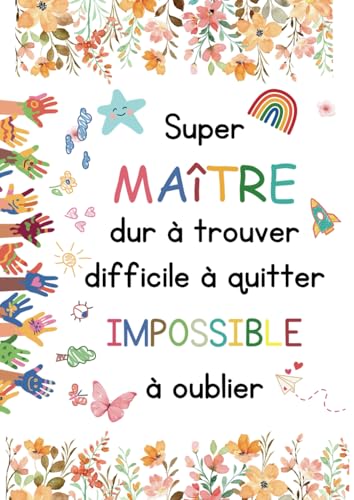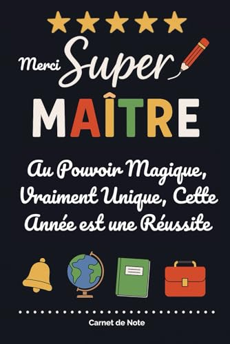 Merci maître pour cette super année: Beau carnet personnalisé à offrir à son maitre d'école | Parfait pour la fin d'année scolaire