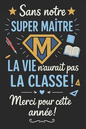 SANS NOTRE SUPER MAITRE LA VIE N'AURAIT PAS LA CLASSE: Un carnet de notes personnalisé à offrir à votre maître en fin d’année – Un cadeau touchant et pratique pour exprimer votre gratitude.