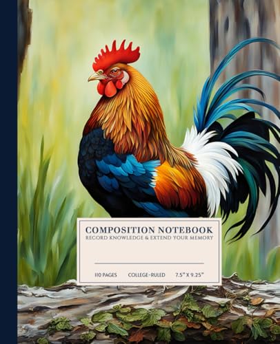 Beautiful Regal Rooster Composition Notebook | Vibrant College-Ruled Notebook: Majestic Bird | 110 Pages | 7.5" x 9.25" | Perfect for Students, Artists, and Nature Lovers