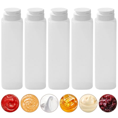 FYting Köksflaska, 5 delar, 350 ml, BPA-fri, läckagesäker med automatisk öppning och stängning, för ketchup, senap, majonnäs, såser, olivolja (10 oz)