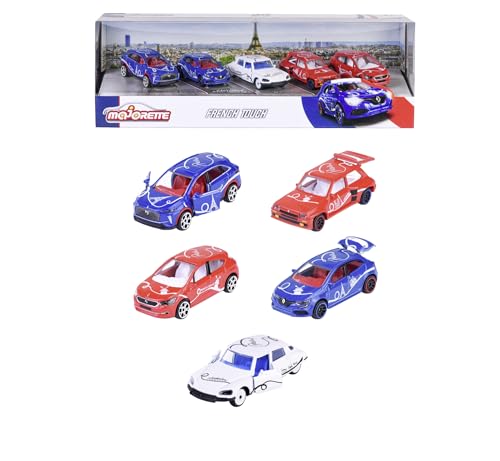 Majorette 212055012 - French Touch Bilar 5-Pack Presentförpackning - Majorette French Touch Bilar i 5-Pack Presentförpackning med Frihjul, Formgjuten, Öppningsbara Delar, 1:64, 7,5 cm