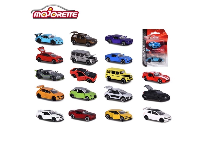 Majorette – Racing bilar – 1 av 18 slumpmässiga leksaksbilar, mycket detaljerad, skala 1:64 (7,5 cm), med samlarkort, modellbil för barn från 3 år