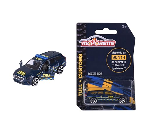 Majorette 212057182DN1 - Volvo V90 Tullverkets Officiella Bil - Frihjul och Öppningsdelar, 1:64, 7,5 cm, Från 3 år
