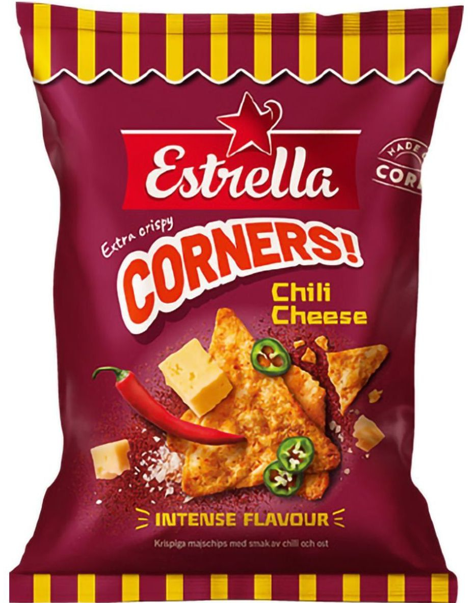 Estrella Corners Chili Cheese - Majschips Med Chili Och Ostsmak 160 Gram