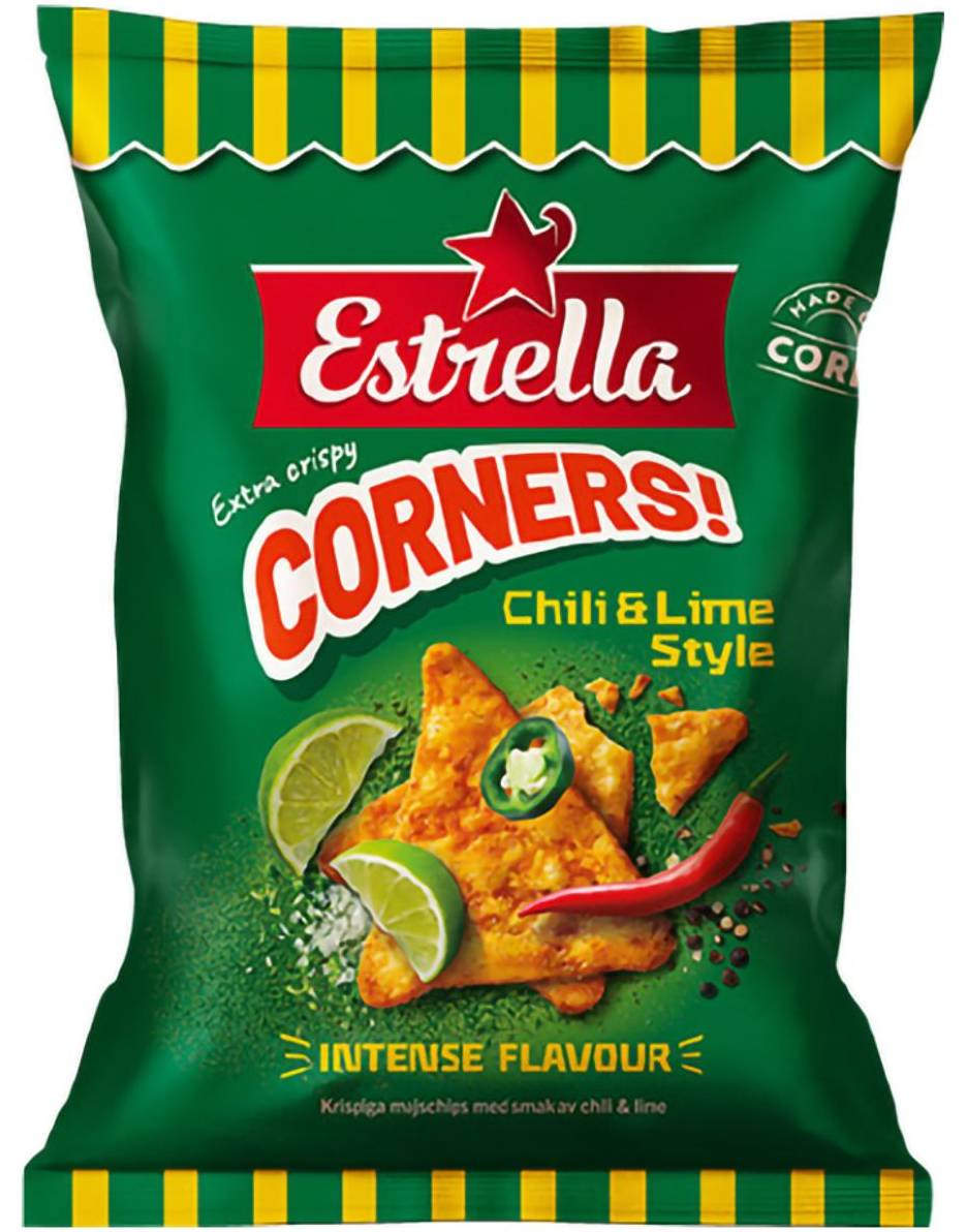 Estrella Corners Chili Lime Style - Majschips med Chili og Limesmag 160 gram