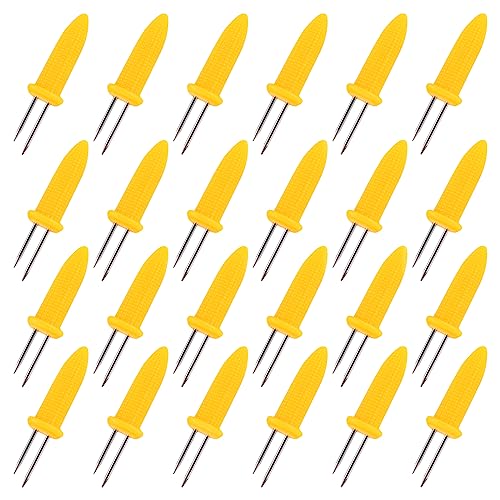OFFCUP 24 st majshållare i rostfritt stål, majs på kolvhållare, majs på kolvspetthållare, kreativa majskolvgafflar med PP-handtag för grill, camping, picknick