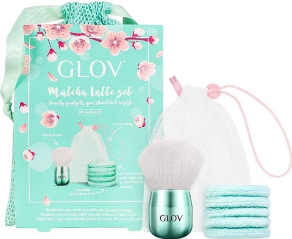 Glov Matcha Latte Set Moon Pads Make-Up Remover 5St + Kabuki Make-Up Brush + Väska