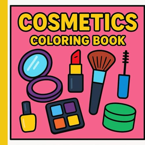 Cosmetic Cuties: A cute coloring book for kids and girls | Easy to color pages filled with makeup items, lipsticks, brushes,and adorable skincare bottles