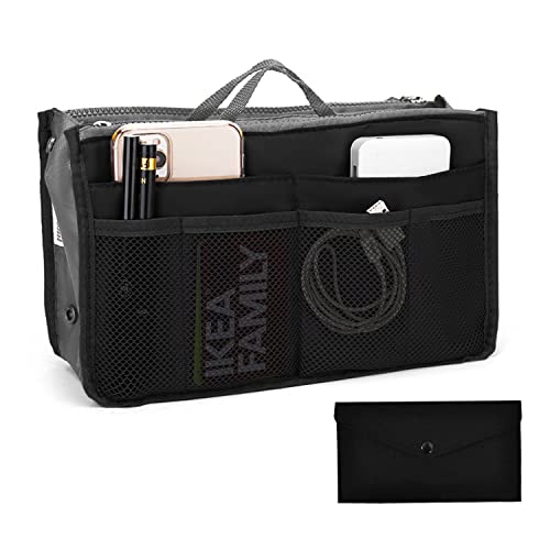 PFLYPF 1 svart arrangör och 1 svart filtplånbok, mångsidig toalettartiklar, dubbel dragkedjeväska, make-up arrangör-fodral, organizer väska, lämplig för resor