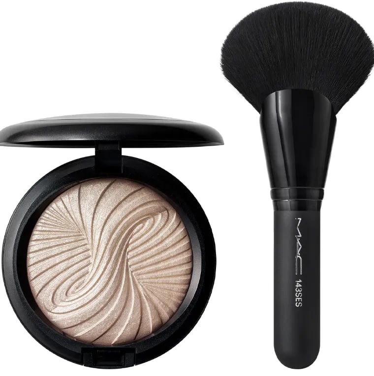 Trick Of The Light Extra Dimension Skinfinish Kit Set Mac: Makeup Bag, Burgundy + Mac, Multi Face Brush, 143S + Extra Dimension Skinfinish, Highlighter Powder, Magnetic Attraction, 9 G