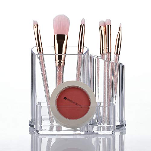 Guolich Makeup Organizer Borsthållare 3 Sektioner Akryl Kosmetikförvaringsväska Stativ för Smink, Hem, Kontor, Badrum(Transparent 011)