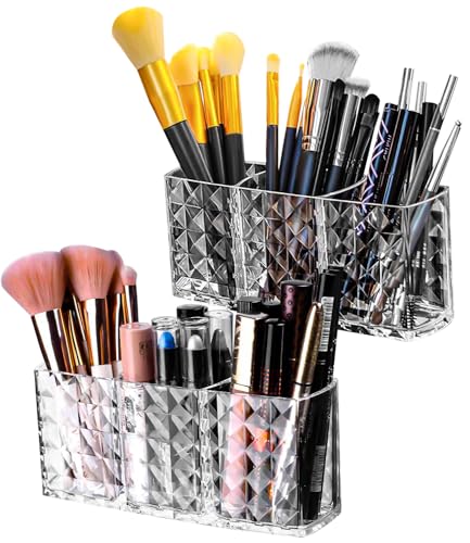 FAOKZE 2 st sminkborsthållare,3 fack organisatör,akryl förvaring borste,Makeup Organizer Borsthållare,Kosmetisk arrangör akryl,Kosmetisk organis,för Smink, Hem, Kontor, Badrum(Transparent)
