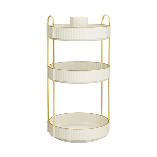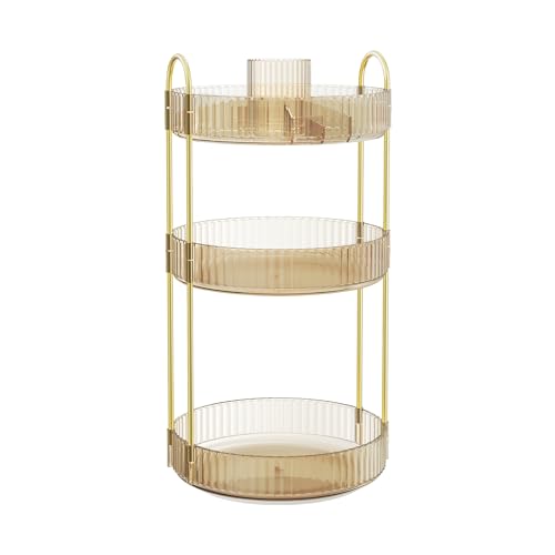 SONGMICS Makeup Organizer Roterande Kosmetisk Organizer Rund 3 Nivåer Kosmetisk förvaring Justerbart Sminkbord Presentidé Champagne Guld JKA011A01