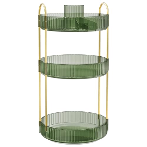 SONGMICS Makeup Organizer Roterande Kosmetisk Organizer Rund 3 Nivåer Kosmetisk förvaring Justerbart Sminkbord Presentidé Ljusgrön JKA011C01
