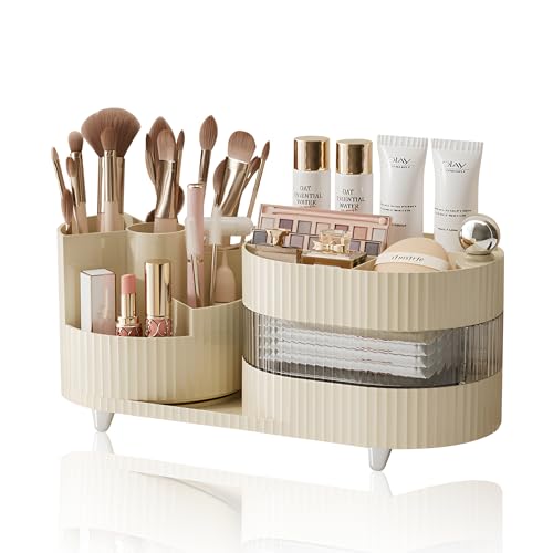 Makeup Organizer 360° Roterande 3 våningar Kosmetisk förvaring 2 i 1 Skönhetshållare med stor kapacitet Organizer för Sminkbord Hudvård Multifunktion för badrum