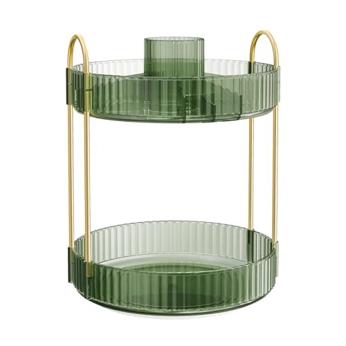 SONGMICS Makeup Organizer Roterande Kosmetisk Organizer Rund 2 Nivåer Kosmetisk förvaring Justerbart Sminkbord Presentidé Ljusgrön JKA012C01