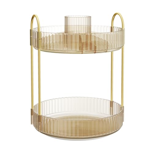 SONGMICS Makeup Organizer Roterande Kosmetisk Organizer Rund 2 Nivåer Kosmetisk förvaring Justerbart Sminkbord Presentidé Champagne Guld JKA012A01
