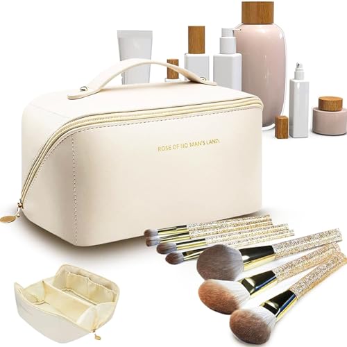 Makeup väska, Makeup Needle, Bärbar Travel Makeup Bag, Makeup Organizer, PU Makeup Bag, för resor och badrum, Beige, 23,5 * 11 * 11 cm