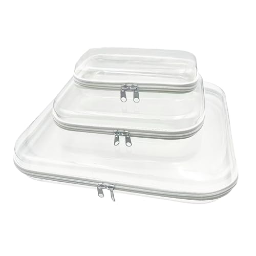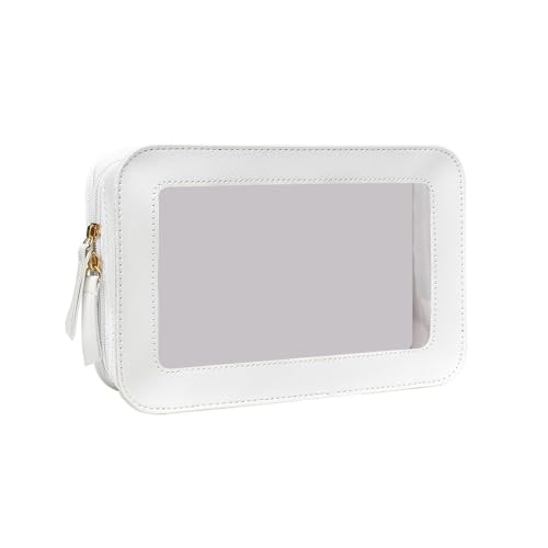 Popvibe Klar makeupväska toalettväska resa transparent sminkväska med dragkedja, bärbar sminkorganisatör resande kompakt bilväska för nödvändigheter, Vitt, Medium+Large, Klart läder sminkväska med