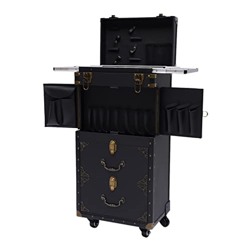 Kosmetisk väska, stor makeup-väska med lösenordslås, 39 x 26 x 82 cm professionell frisörväska, sminkväska med hjul 360° roterbar, vintage, svart, 39*26*82cm, Vintage