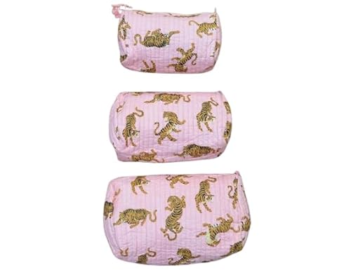 INDACORIFY Indisk bomull tiger block tryck set med 3 delar toalettväska vintage makeupväska resväska sminkväska quiltad tvättpåse rakning kit väska, flerfärgad, väska, flerfärgad, Väska