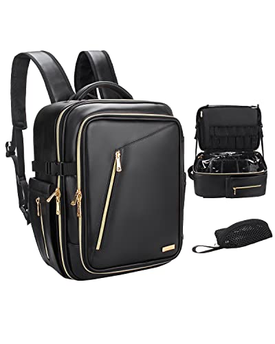 Relavel Sminkväska bärbar resa makeupväska, stor professionell makeup arrangör resväskor förvaringsväska för kvinnor makeupartister lätt att rengöra läder, En ryggsäck, L-Leder