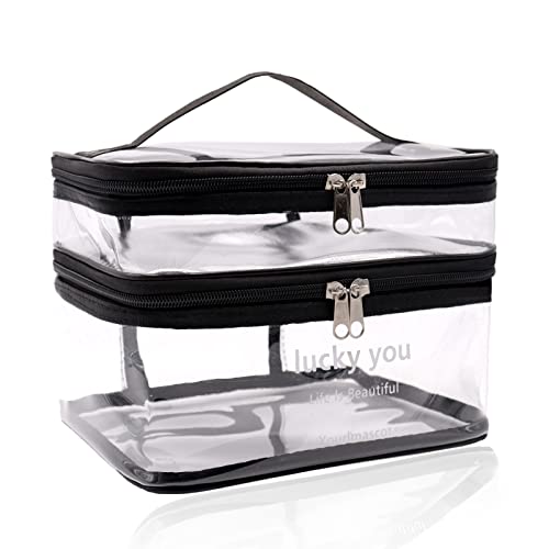 Necessär transparent, makeupväska PVC sminkväska necessär dubbla lager vattentät tvättväska, genomskinlig sminkväska för flickor och kvinnor, KLAR, Klar