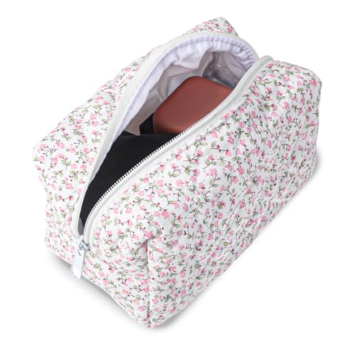 LUHOCIY Sminkväska med blommor, quiltad kosmetikväska, makeupväska, gjord av mjukt bomullsmaterial, dragkedja för att förvara olika sminkredskap (rosa), Hhta, Minimalistisk/enkel/populär stil