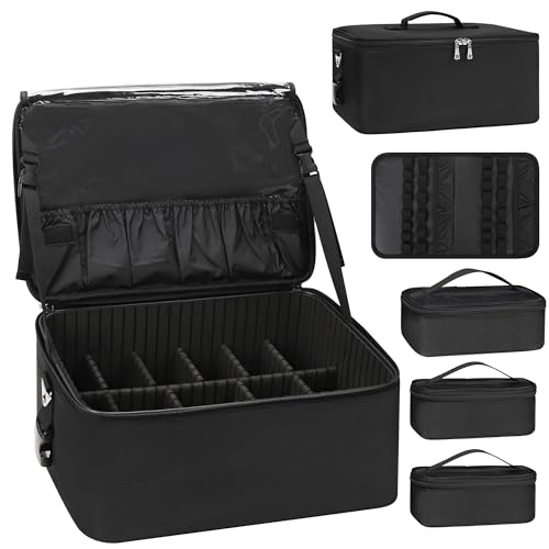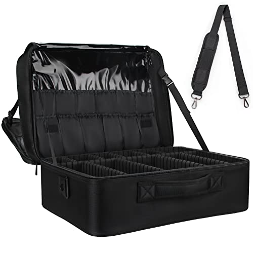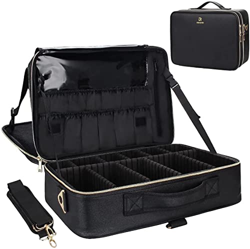 Relavel Resesminkväska för tåg, makeup-väska, organiserare, bärbar förvaringsväska för artister, med justerbara avdelare, för smink, sminkborstar, toalettartiklar, smycken, A-svart, Medium