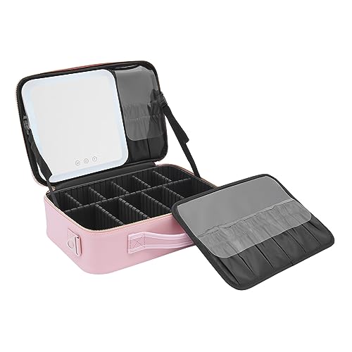Sminkväska med spegel, stor makeupväska 3 färger LED-ljus resa sminkväska damer makeup arrangör toalettväska arrangör, ROSA, modern