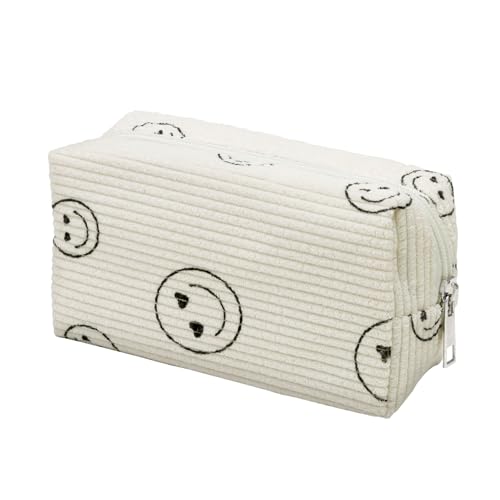 GlasFlength Sminkväska manchester, liten necessär makeupväska multifunktionell sminkväska leende kosmetisk väska bärbar med metall dragkedja sminkväska för resor (beige), Beige, Fashion