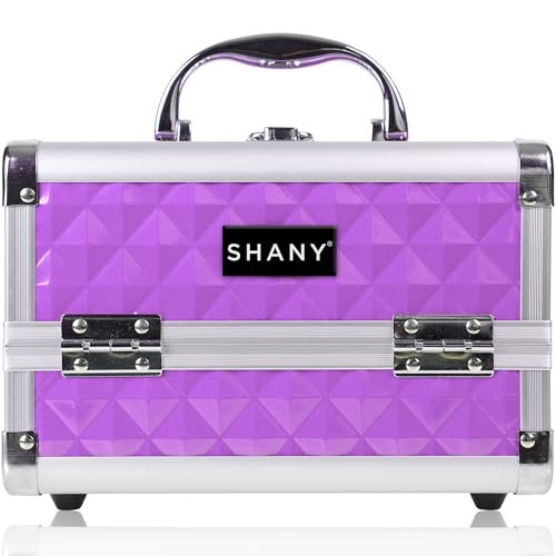SHANY Sminklåda, chic, makeup, fodral, kosmetiska, bärbar makeupväska, skönhetsorganisatör, smycken, förvaring med lås, flera avdelningar, sminkförvaringslåda med sminkspegel – lila