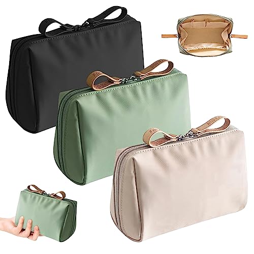 3 stycken kosmetikväskor i nylon, sminkväska liten, resa makeup-väska med fack, vattentät och lätt förvaringsväska resa toalettväska, handväska sminkväska för resor förvaring, Grön + svart + khaki