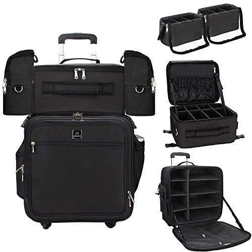 Studio Kemier Makeup-väska, 2-i-1 omriktade hjul, professionell mjuk sida, sminkväska, sminkväska med rullar, kosmetisk organisatör med förvaringslådor