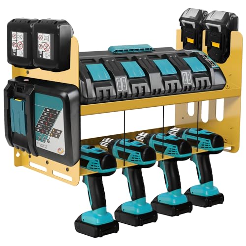 JYiuog Verktygsminne vägghållare, verktygshylla för Makita laddare DC 18SF DC 18 RC, 18 V/14,4 V batterier och slagborr, verktygshållare för verkstad och garage, verktygshylla organisering (gul)