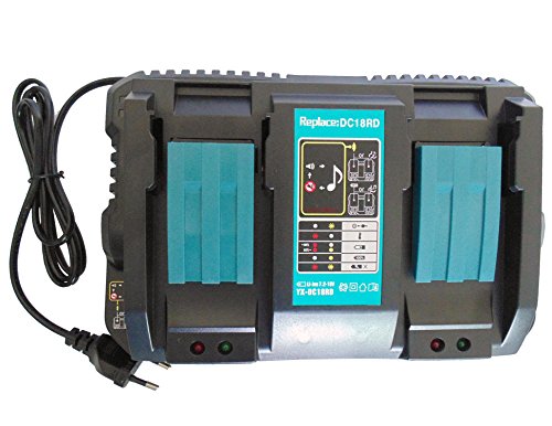 Ersätta för Makita Laddare DC18RD 2-delad 14.4V 18V 4A Dual Snabbladdare DC18RC DC18RA för Makita Maximal 14.4-18 Volt Batteri BL1815 BL1830 BL1840 BL1845 BL1850 BL1415 BL1430 BL1440