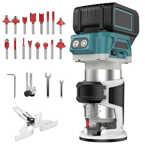 Batteridriven överfräs kompatibel med Makita 18 V batteri, 800 W borstlös trätrimmer, batteriöverfräs trimmer för Makita, batteriträtrimmer med 16 stycken 1/4 tums hårdmetallfräs-set