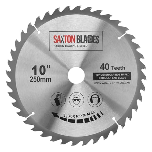Saxton TCT Cirkulärt trä sågblad 250 mm x 30 mm x 40T för Bosch, Makita etc passar 255 mm sågar
