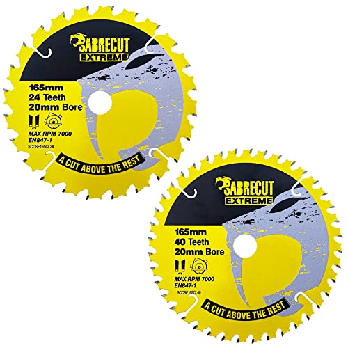 2 x SCCSFK165CL SabreCut 165 mm 24T och 40T x 20 mm sladdlös cirkelsågblad kompatibel med Dewalt Bosch Makita och många andra