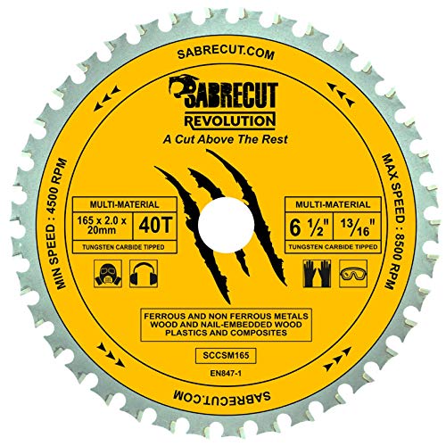 1 x SabreCut SCCSM165_40 165 mm 40T x 20 mm 16 mm hål multimaterial metall trä Plast cirkelsågblad Kompatibel med Bosch Dewalt Makita Milwaukee och många andra