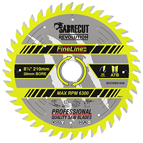 1 x SCCSW21040 SabreCut 210 mm 40T x 30 mm borr fineline tunn kerf trä plywood MDF-spånskiva tvärskärning och rippskärning cirkelsågblad kompatibel med Dewalt Makita Milwaukee och många andra