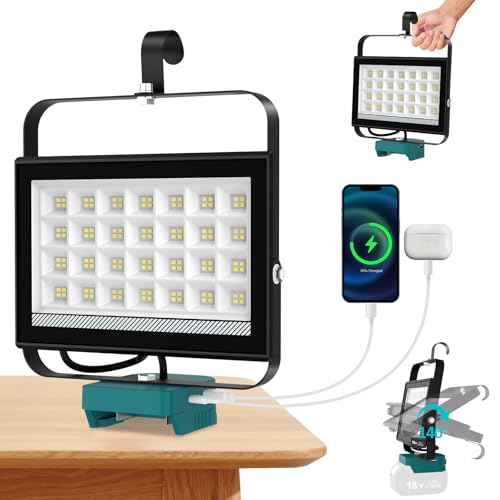 Trådlös LED-arbetslampa, kompatibel med Makita 18 V, bärbar arbetsplatsljus med USB och typ C-port, batteridriven för arbetsplats, camping, reparationer garage