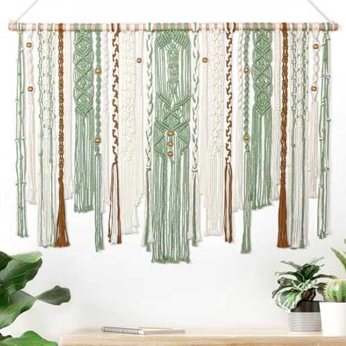 LOMOHOO 98 x 75 cm stor makramé vägghängande väggdekor, boho väggbonad hängande handgjord vävd bohemisk dekor hemgåvor estetisk grön väggkonst för vardagsrum sovrum barnkammare kontor balkong