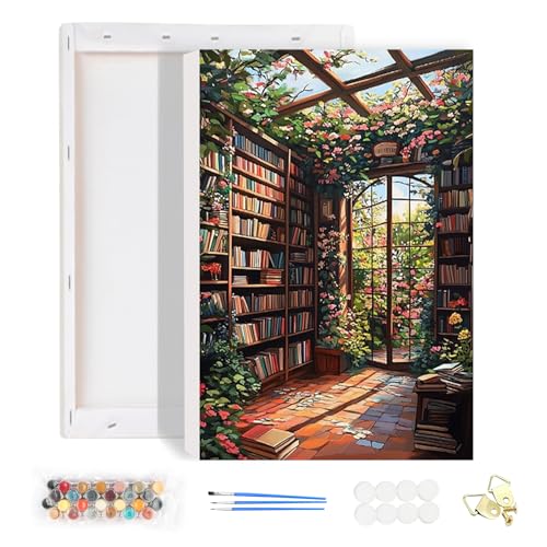 HEIBAGO Inramad Paint by Numbers för vuxna, bokhylla måla efter siffror för nybörjare, gör-det-själv landskapsmålningssats för barn, måla efter siffror för heminredning 20 x 30 cm
