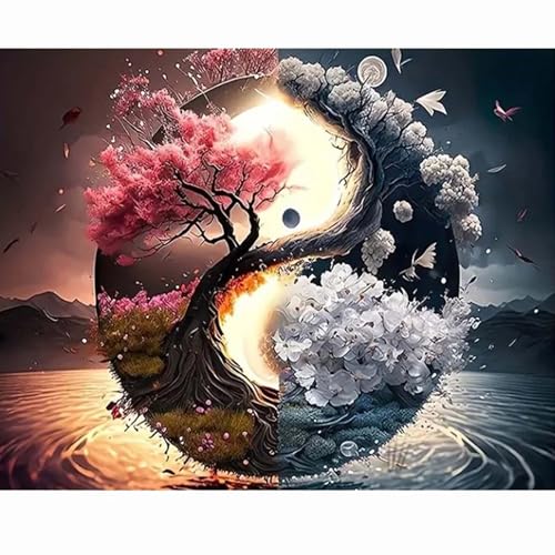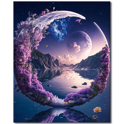 TISHIRON Måla efter siffror för vuxna måne gör-det-själv oljemålning efter nummer på duk blomma konst hantverk med penslar akrylfärger för barn heminredning målning gåva 40 x 50 cm ramlös