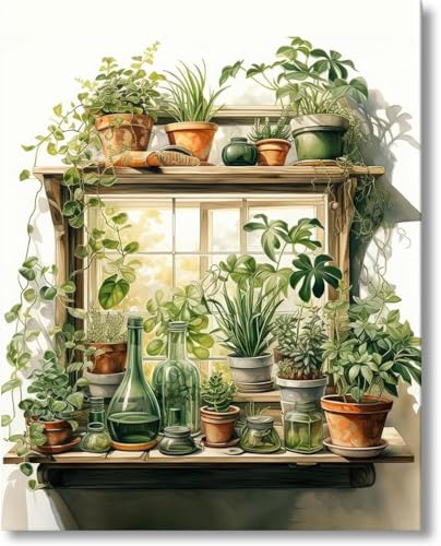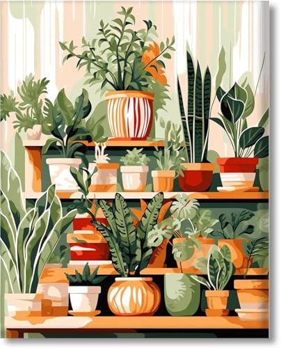UNIQUORS Måla efter siffror vuxna, färgglada blommor, krukväxter, gör-det-själv förtryckt linneduk oljemålning set, heminredning gåva med 3 borstar och akrylpigment, 40 x 50 cm (utan ram)
